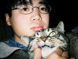 イチと私のツーショット写真。 それにしてもなんちゅー顔だ、俺もイチも…。 こうやって見ると、頭でかいね、この猫…。 |