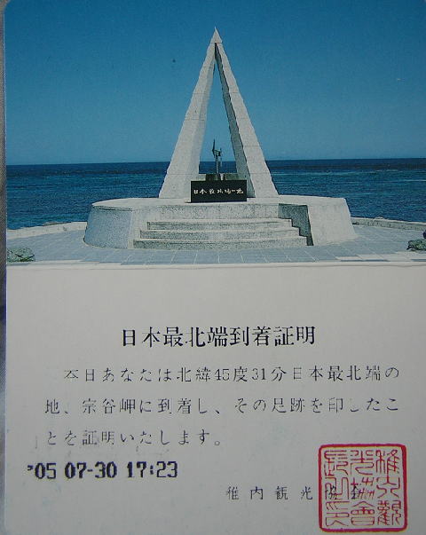 | 土産屋で、最北端到達証明書を購入。100円。 (クリックで拡大) |