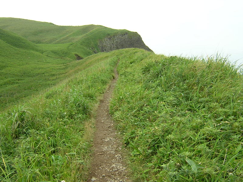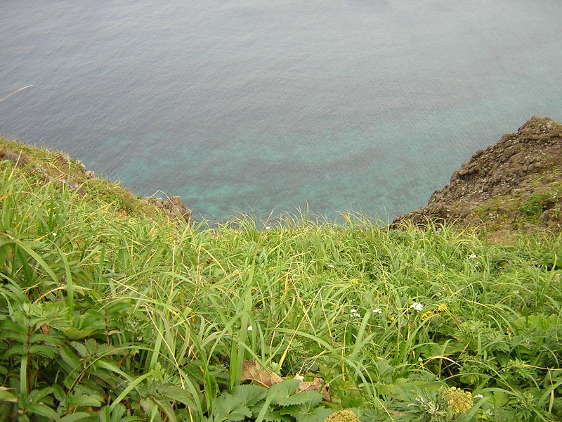 | 尾根伝いに歩いていく。 | 崖の横も通る。 眼下には透明度の高い真っ青な海。 落ちたら確実に… |