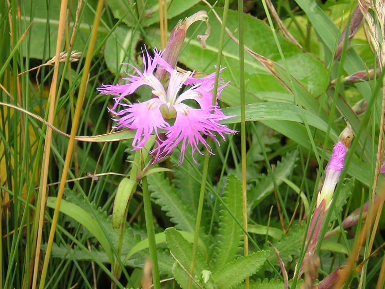 高山植物の知識0で行ったので、 花の名前もわからぬまま、とりあえず写真に撮ってしまいました。 ↑ 後日、HPを見た方から、親切にメールで教えていただきました。 左上:ナデシコ科 タカネナデシコ (orカワラナデシコ) 右上:キク科 エゾノコギリソウ 左下:キキョウ科 モイワシャジン (orツリガネニンジン) ありがとうございました。 |