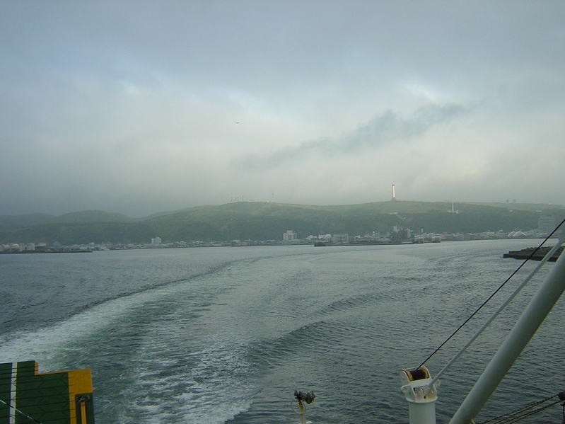 | 稚内港を後にする。 | だんだん町並みが小さくなっていく。 |