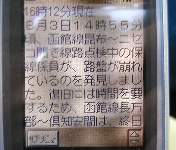 駅員さんの話によると、室蘭方面の線路に土砂が流れ、不通となっているらしい。
