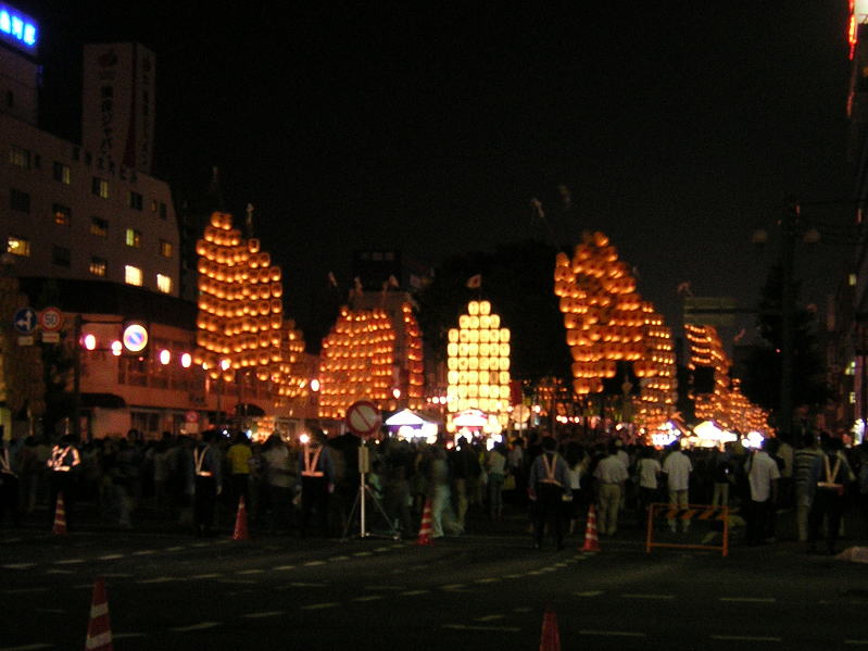 青森で「ねぶた祭り」の時期は、秋田では当然「竿灯祭り」の時期である。